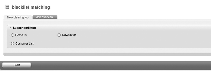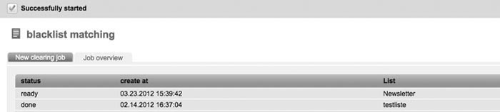 | You will find information on the blacklist and its function in 2.11 Blacklist. Via the function 'Blacklist matching', you can coordinate the data records of your subscriber lists with the entries in your blacklist. Detected subscribers will automatically be deleted by EOS Newslettertool. First, you have got to choose the subscriber list which has to be examined. By clicking the 'OK' button, you will confirm the appearing message to delete the search results. The result will show you how many subscribers were removed due to the fact that they are registered in the blacklist. |
