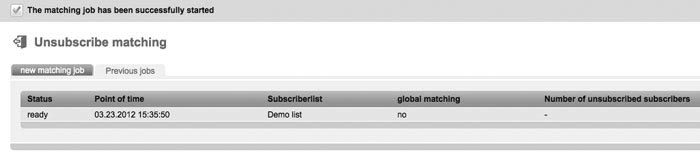 Now, EOS Newslettertool starts the matching and, after having finished, it informs you about the number of the deleted subscribers. |