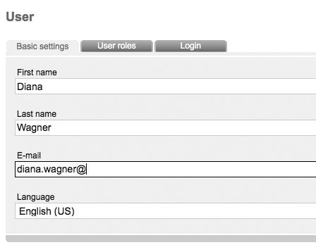 You can set up new users for your 'EOS Newslettertool' account by clicking 'administration' - > 'user'. Editing or removing of users is also possible. Create a new userEnter the email address of the certain user in tab 'basic settings' and set the language which should be used.