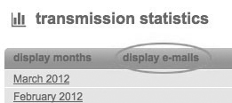 In the transmission- statistic you see the data collected from EOS Newslettertool (Traffic, Total). Also you see, if exist, the numbers of test-sendings, clicks on the subsriber-link and the number of subscribers who have completed the optin-confirmation. Next to the view 'display months' you also can select 'display e-mails'. So EOS Newslettertool outputs the above mentioned figures for each mailing.