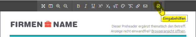 Um die Inhalte Ihrer Mailings, Landingpages usw. zu personalisieren, lassen sich über Platzhalter wie [Anrede /] oder [Kundennummer /] die Daten eines Abonnenten einfügen. Dazu stehen an zahlreichen Stellen Eingabehilfen zur Verfügung.