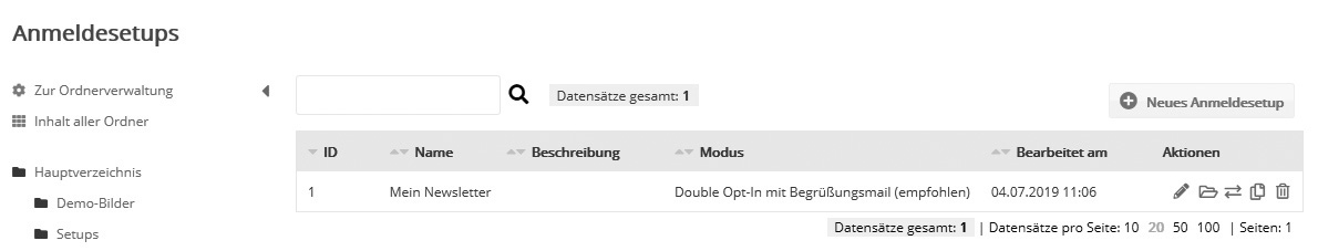 Sollten Sie ein Anmeldesetup in einen Unterordner verschoben haben, gelangen Sie an diese Stelle per 'Ordner öffnen'. Vorbereitungen für ein funktionierendes AnmeldesetupLegen Sie in EOS Newslettertool zunächst alle Zutaten an, die später im Anmeldesetup verwendet werden:
